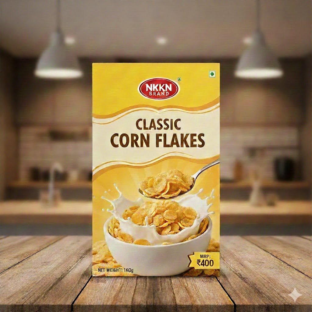 Classic Corn Flakes” (typically referring to the Kellogg’s brand product) in a 1 kg pack can be described as a nourishing, ready-to-eat breakfast cereal known for its golden, crispy flakes.