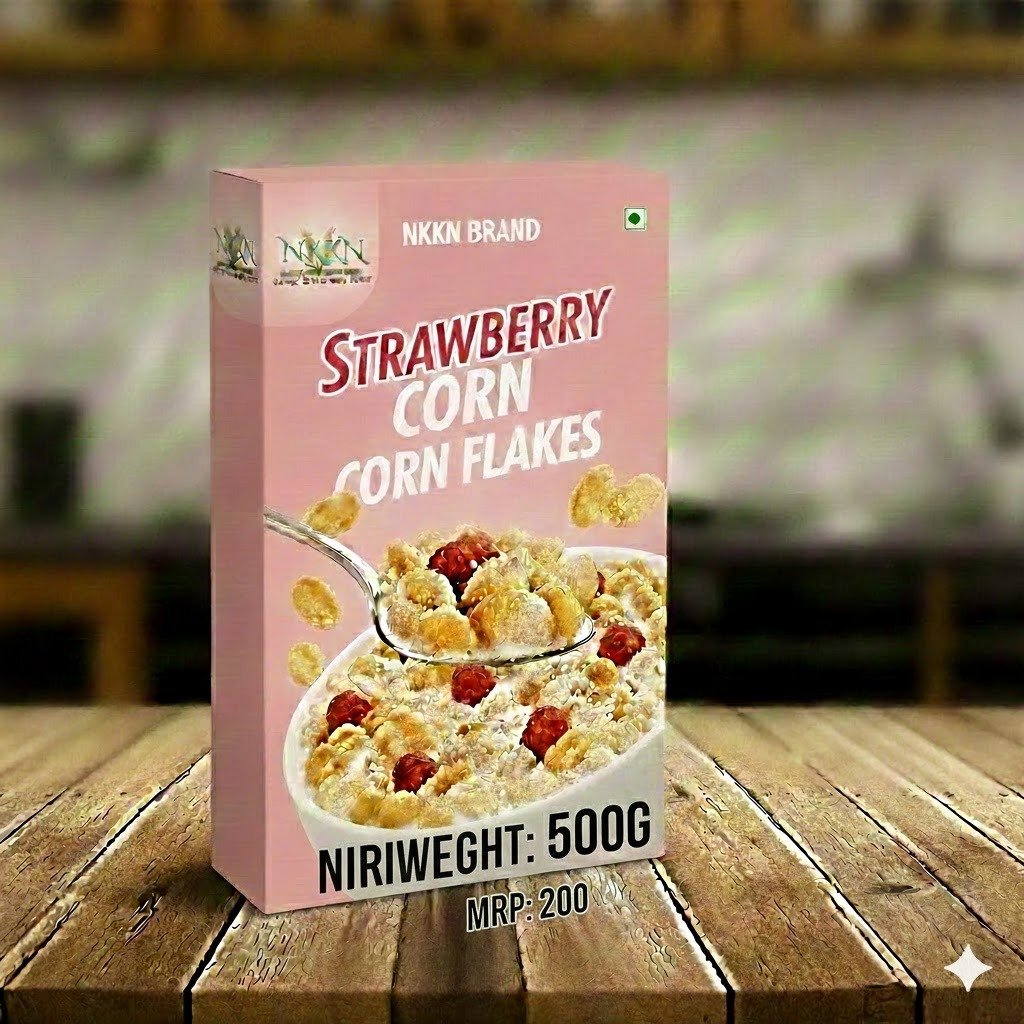 Here is a general description of strawberry corn flakes (250g) in English, based on common product features from various brands like Kellogg’s and Kwality: